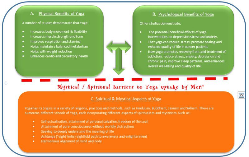 ● Yoga not seen by men as providing an extensive / strenuous or competitive workout and therefore is of little benefit.